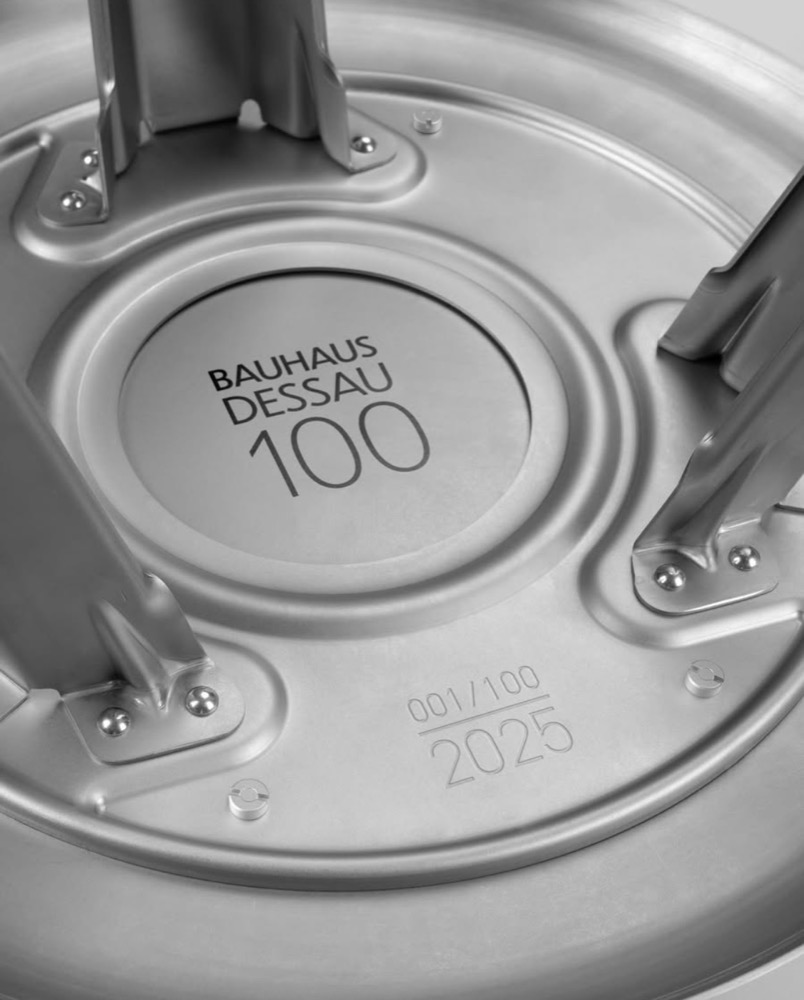 For the 100 year anniversary of Bauhaus Dessau, Rowac made a limited edition of their icon Schemel stool which was used historically by the students in the Bauhaus. Rowac makes wonderful use of Dunbar in their branding and advertising in general, and the limited edition stool, made of pure steel, features Dunbar for the Bauhaus Dessau 100 logo on the bottom of the seat. Rowac did a stunning job using Dunbar in promotional materials for the launch of this edition, including signage in the designshop at the Bauhaus Dessau museum.